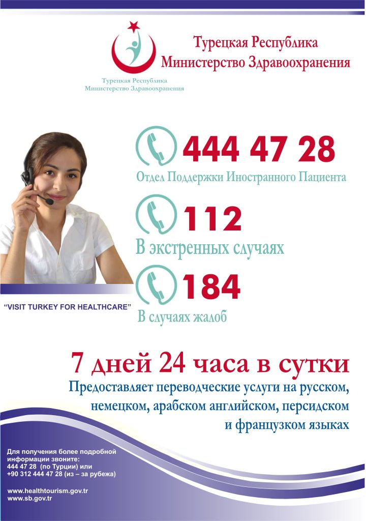 Министерство здравоохранения Турции открыло бесплатную «горячую телефонную линию» для консультаций по вопросам здравоохранения для иностранных пациентов.